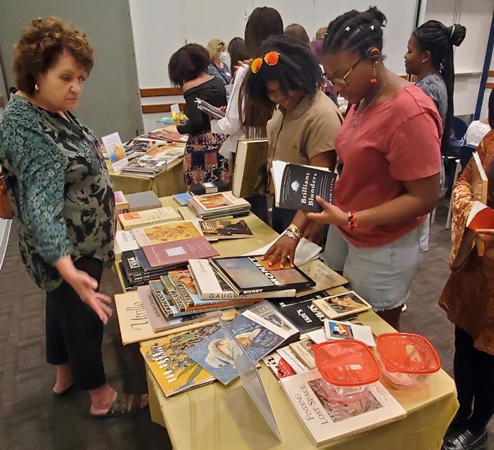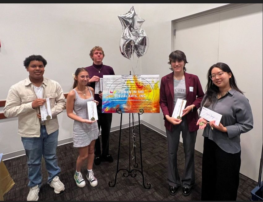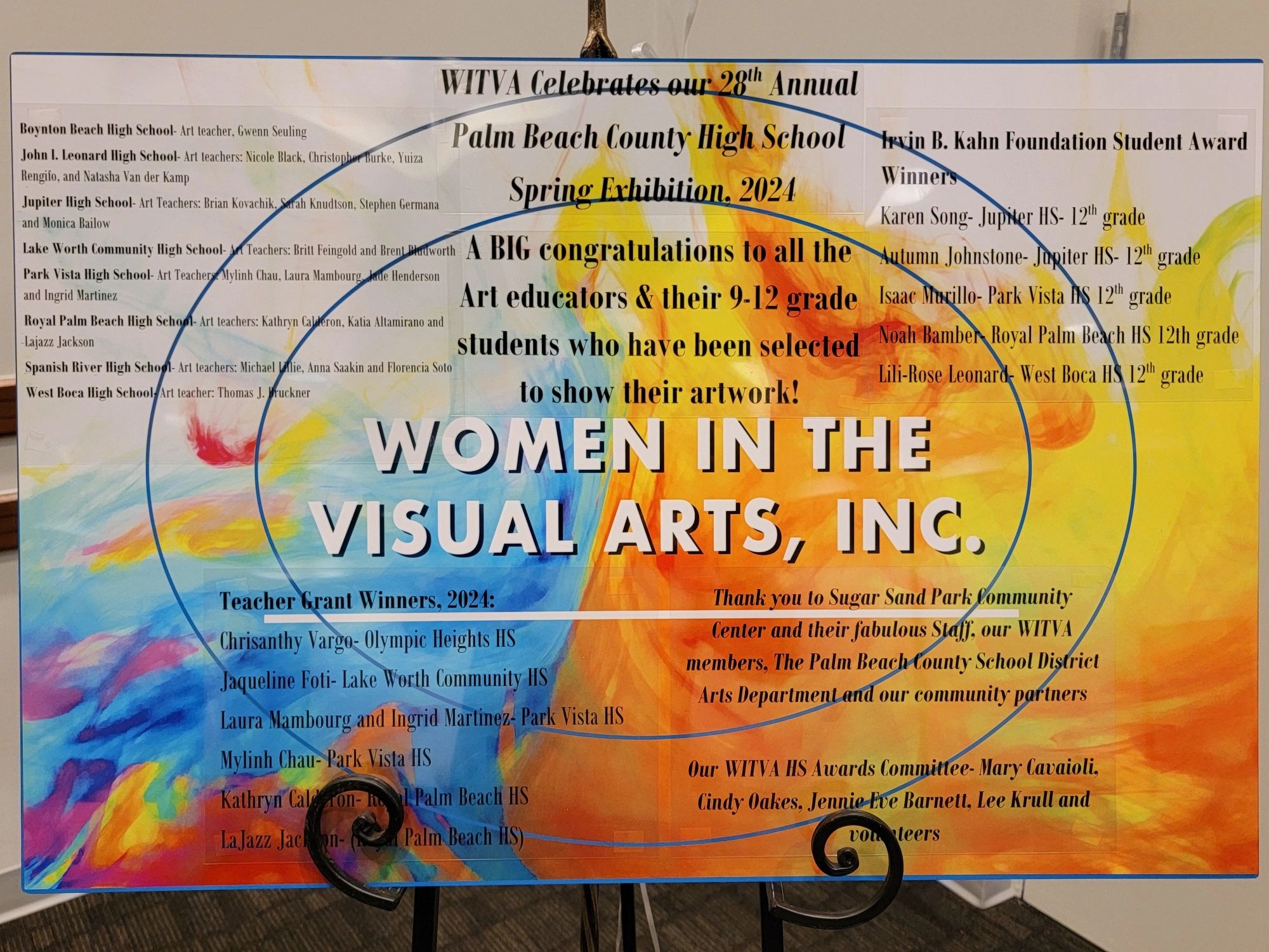 Palm Beach County art teachers submit their student's best 2-D or 3-D work to participate in our WITVA's Spring Celebration of High School Art. The student's work is judged for awards at different levels by a group of selected judges. This year the art was displayed in the halls and cases in the community center at Sugar Sand Park in Boca Raton, FL. where the awards ceremony was also held. This was the 29th year WITVA has awarded high school students in this manner and recognized their teachers. Teacher's grants for classroom supplies/projects were also awarded. The awards are made possible by donations, our fundraisers. This year our membership also donated gently used art books, tools & supplies for the students to choose and take home free of charge after the ceremony.